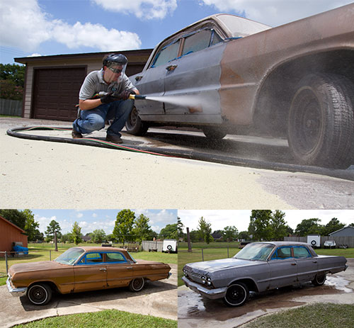 Media blasting is one of the most important steps in correct and professional looking powder coating. Media blasting is a great way to strip old rust, oxidation, paint and dirt off any surface in no time at all. Media blasting can prepares your patio furniture, lawn furniture, rims, wheels, automotive parts, motorcycles parts, and almost anything else you can think of with a peak and valley profile that will allow powder coating or ceramic coating to adhere better. Media blasting is the latest, greenest technology to safely strip paint and/or clean nearly any surface. The media blasting equipment uses compressed air to deliver a cleaning media onto the surface to be cleaned. Similar in concept to sand blasting, media blasting is much kinder and gentler to the underlying surface and the environment. At Kustom Koatings, we use our media blasting service to prepare parts for powder coating or ceramic coating. We also offer our media blasting service by itself without powder coating or ceramic coating.